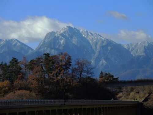 大泉から見る甲斐駒ケ岳。この山は見る位置によって形が大分変わる。