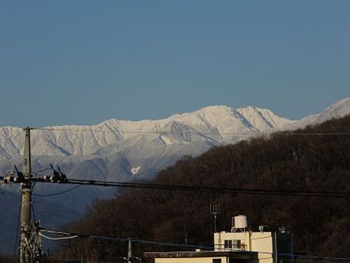 昨日の雨で山は真っ白だった。この写真は5日の写真。5日はかなり標高の低いところまで雪が降った様子が分かったが、昨日の雪は高山だけだったようだ。5日は、場所によって雪の付きが少なく薄っすらと地肌が見えるようだったが、今朝は南アルプスも富士山も真…