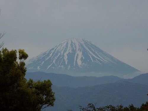 富士山は一気に雪解けが進み、だいぶん縞々になっていろいろな雪形が見えている。